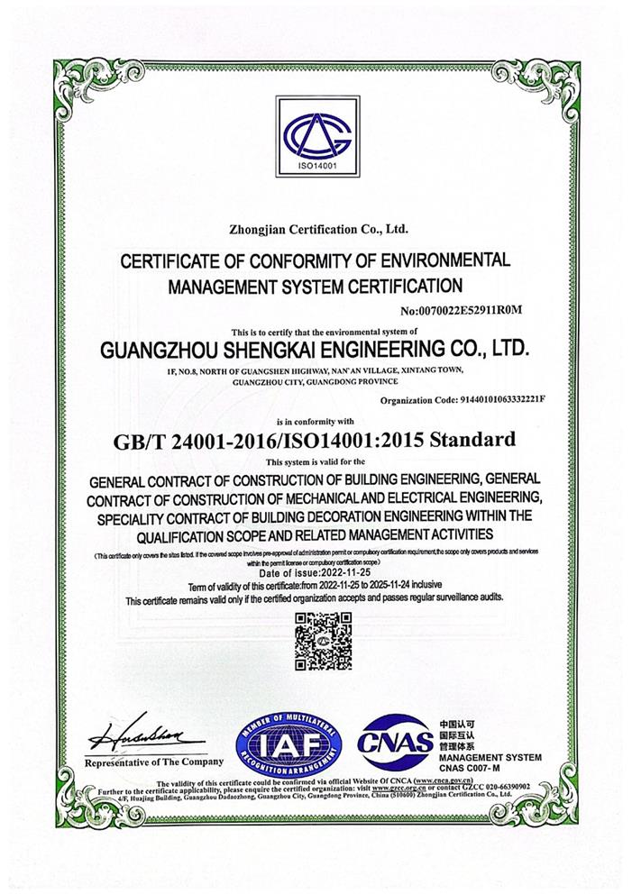 • ISO14001環境管理體系認證證書